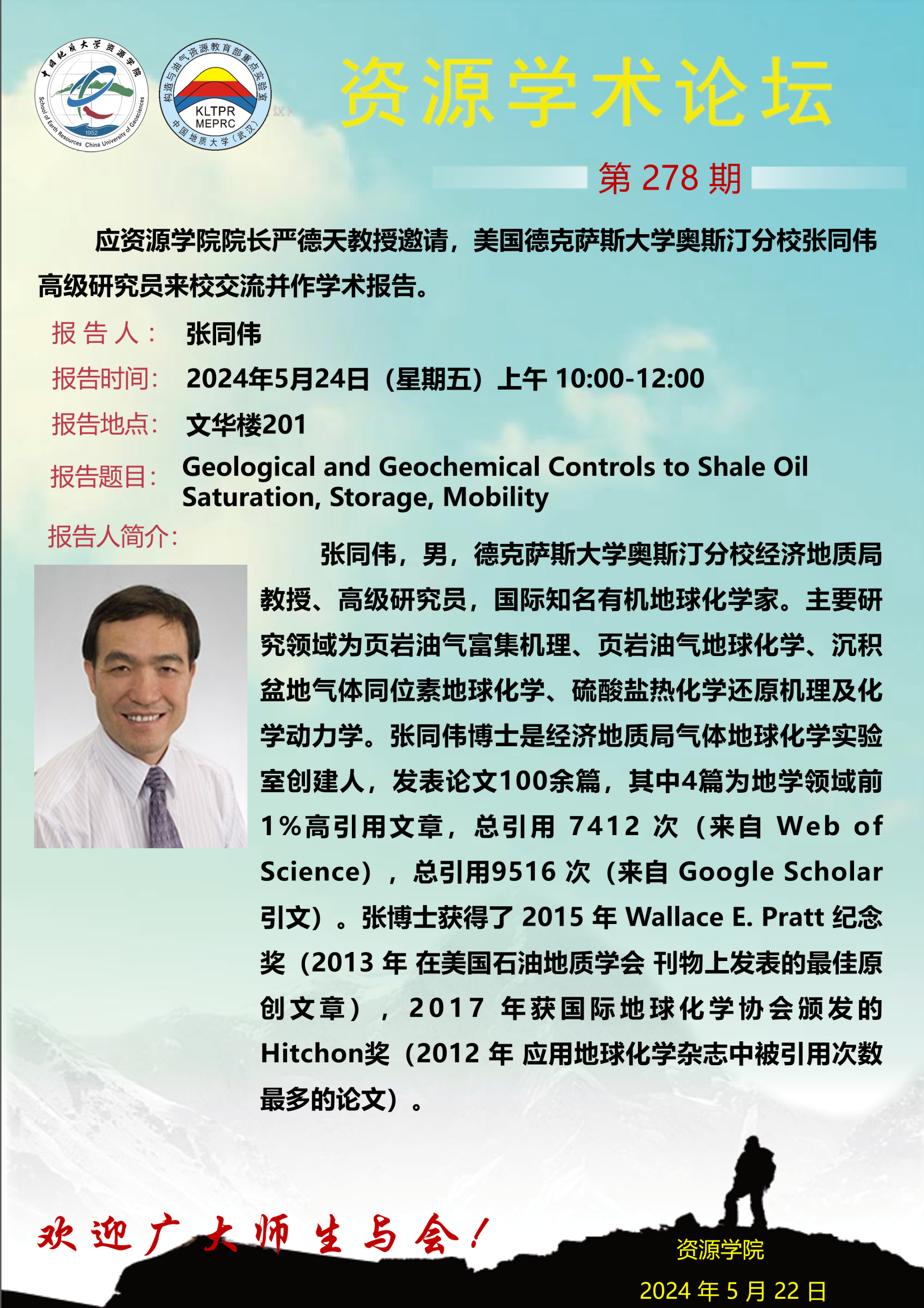 【5月24日】第278期资源学术论坛:张同伟学术报告