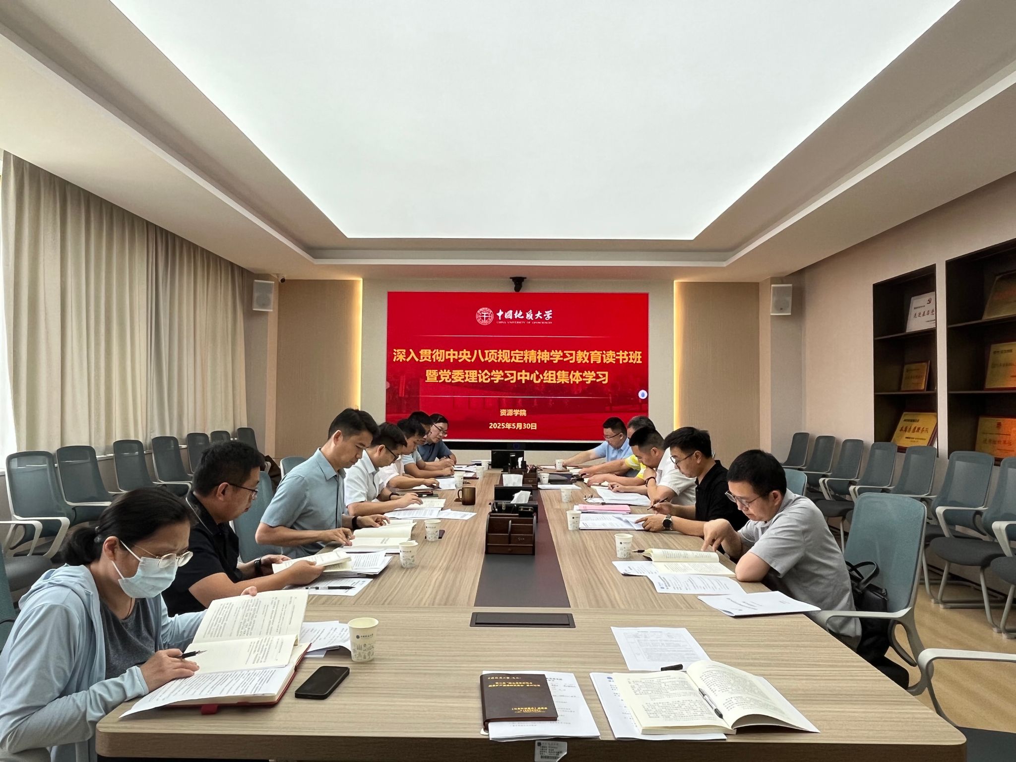 (通讯员 黄梅娇)5月30日,资源学院在主楼330会议室召开深入贯彻中央八项规定精神学习教育读书班暨党委理论学习中心组集体学习会议。学院党委理论学习中心组成员、学术副院长参加学习,学院党委书记汪再奇主持会议,副院长朱红涛领学《习近平关于加强党的作风建设论述摘编》。