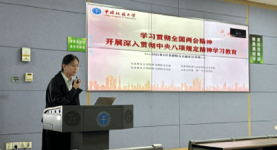 图 3 马克思主义学院青马明责党支部简垒锋同志领学“习近平总书记重要讲话精神和2025全国两会精神”