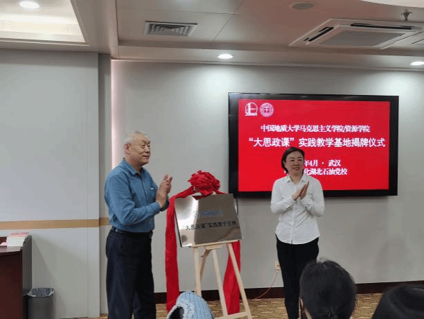 傅安洲教授向中国石化湖北石油分公司授牌“大思政课实践教学基地、大学生实习实践基地”。