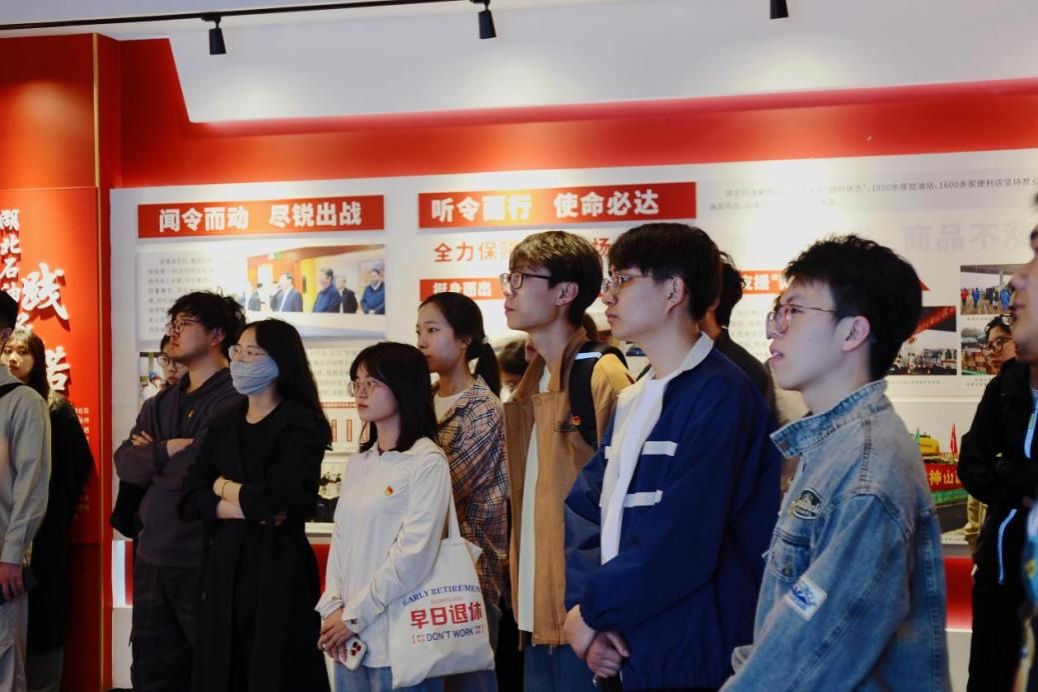 随后,学生党员们前往湖北石油武汉知音加油站参观中国石化抗疫教育基地,走过76天速读长廊,学生党员们深刻感受到知音加油站在抗疫期间的卓越贡献。该站不仅为数千名火神山医院的建设者提供了生活保障服务,还免费为救护车加油,直至医院闭院。因其在抗疫期间的突出表现,知音加油站被誉为“红帽子港湾”,成为抗疫一线的温暖象征。