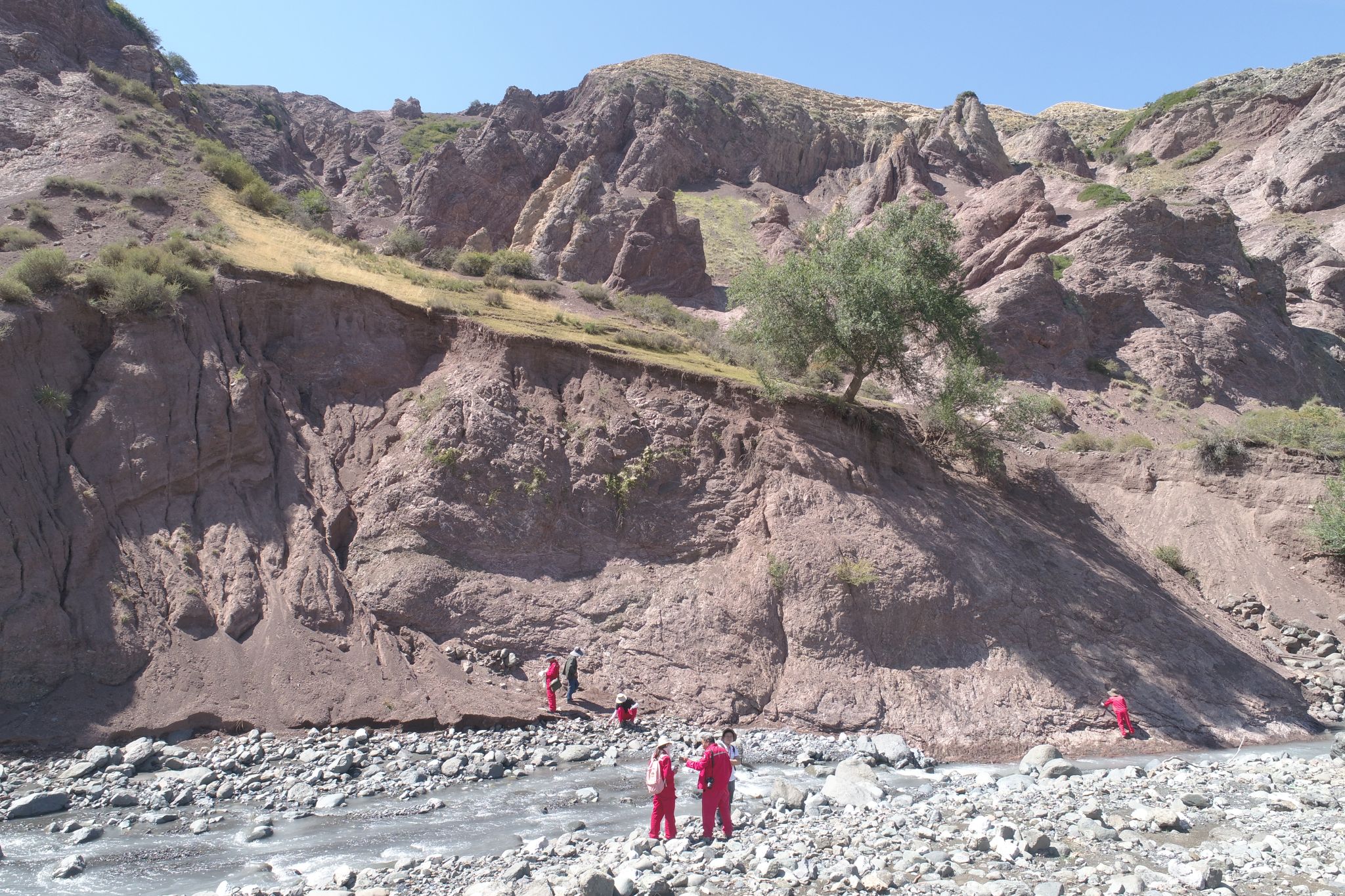 本次活动依托资源学院沉积过程定量化导学团队负责人朱红涛教授与胜利油田合作的“准中地区西部坳陷二叠系“源-汇”系统特征及沉积响应模式”项目,由胜利油田勘探开发研究院牵头,英国威廉集团官网杨香华教授、胡慧博士等成员参与,共同组成野外地质勘查队。本次野外勘查主要围绕天山北部准噶尔盆地南缘开展石炭系-二叠系-三叠系地层、构造、层序、沉积及源汇系统考察。资源学院杨香华教授与支部书记胡慧博士在本次考察中主要负责二叠系地层层序的识别及源汇系统分析等工作。