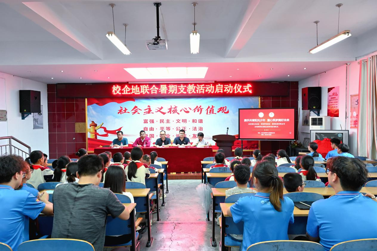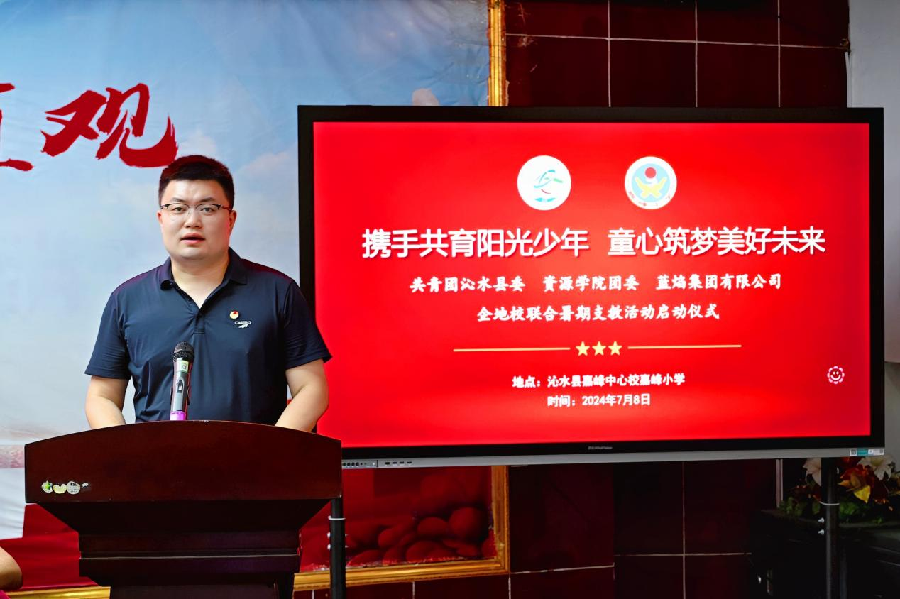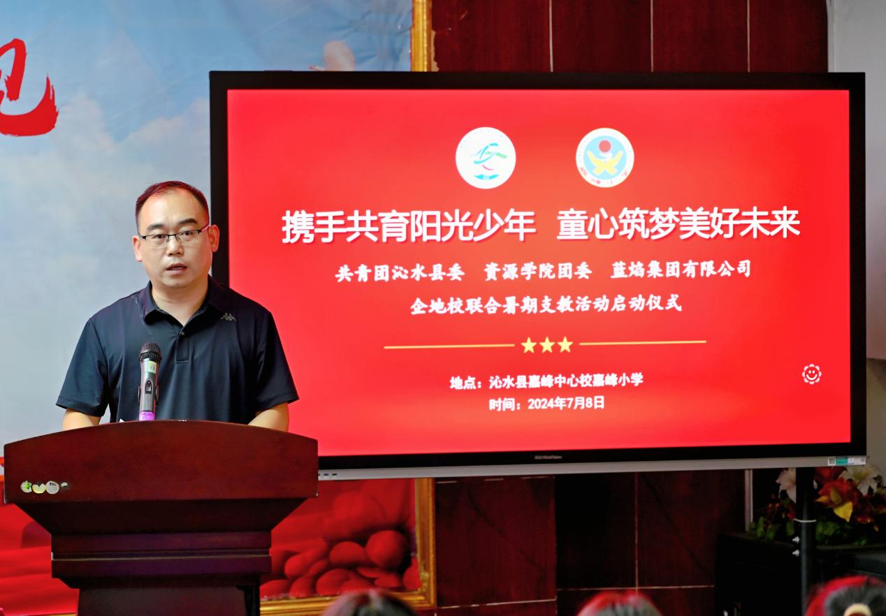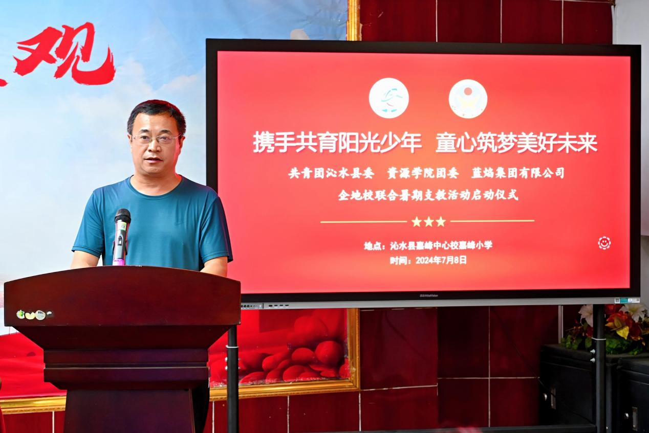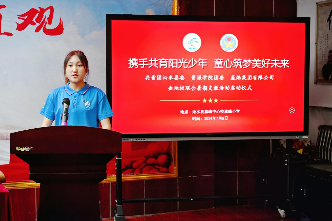 7月8日下午,资源学院团委和蓝焰集团有限公司、共青团沁水县委联合举办的“携手共育阳光少年 童心筑梦美好未来”暑期支教活动在沁水县嘉峰小学启动。共青团沁水县委书记王雄,学院团委副书记彭鑫,嘉峰镇嘉峰中心校校长杨震宏,蓝焰公司党群工作部团委主办李昭出席活动,嘉峰小学教职工代表,“牵手筑梦”实践服务团成员,参与暑期支教的嘉峰小学学生参加活动。