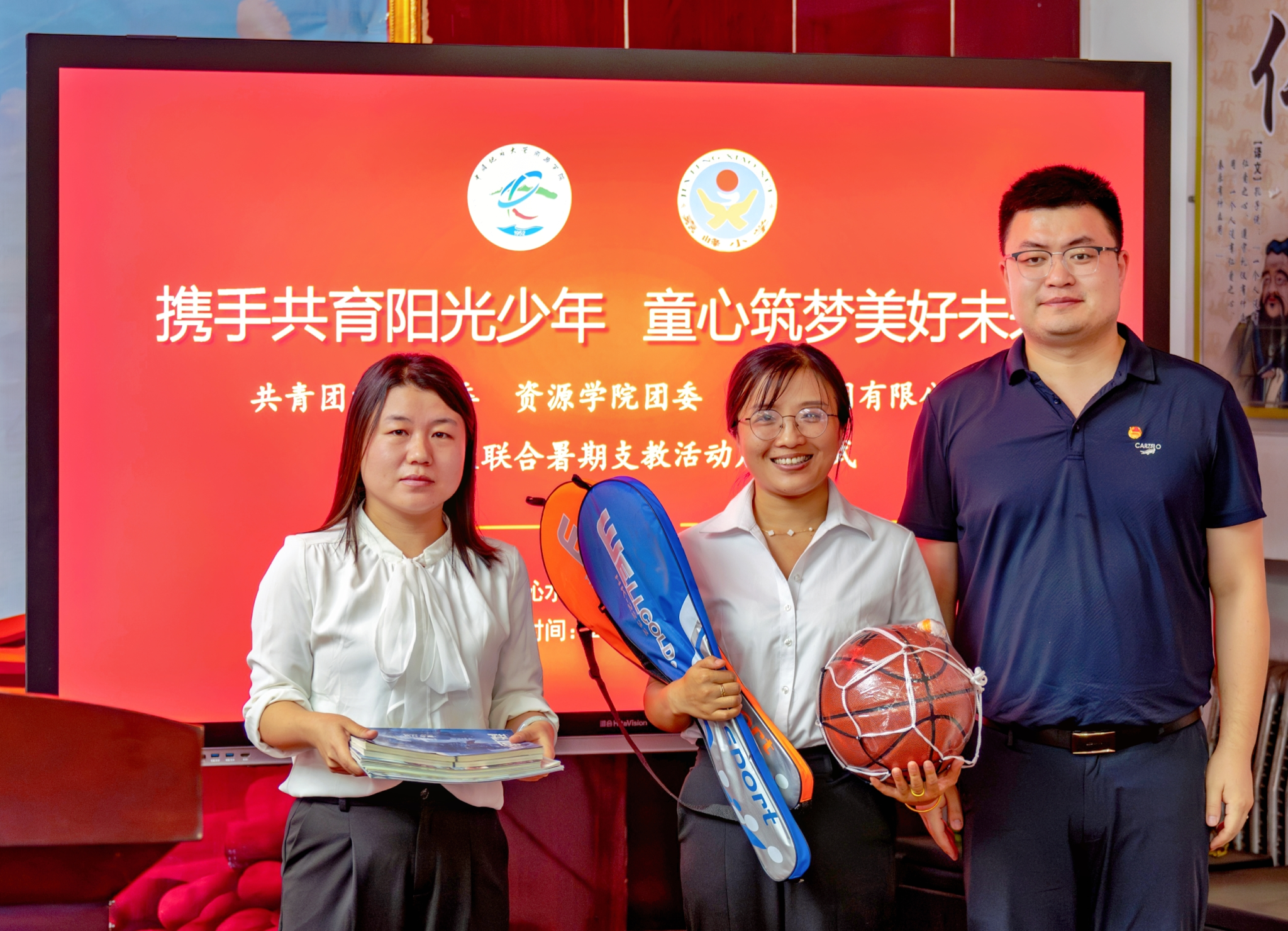 会上,举办图书及文体用品捐赠仪式和“校企地联合志愿服务基地”揭牌仪式。