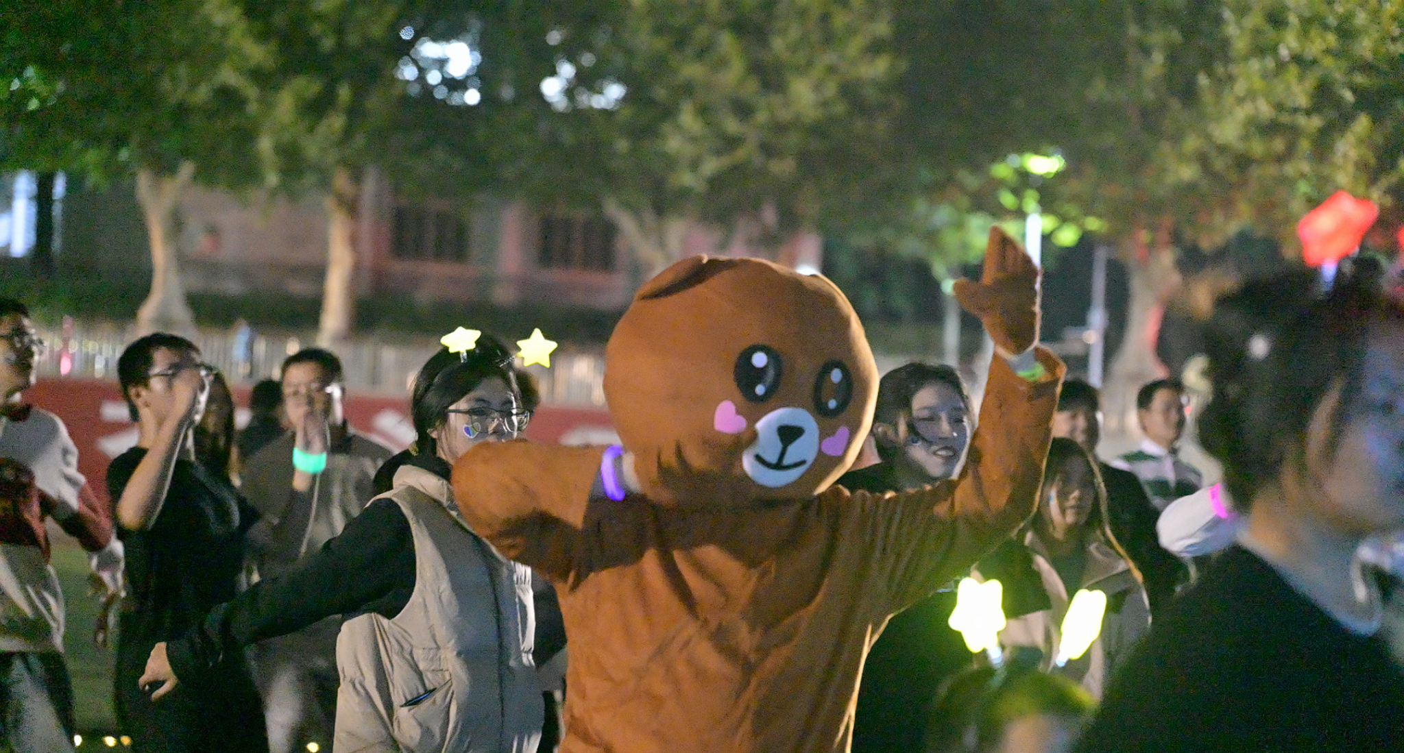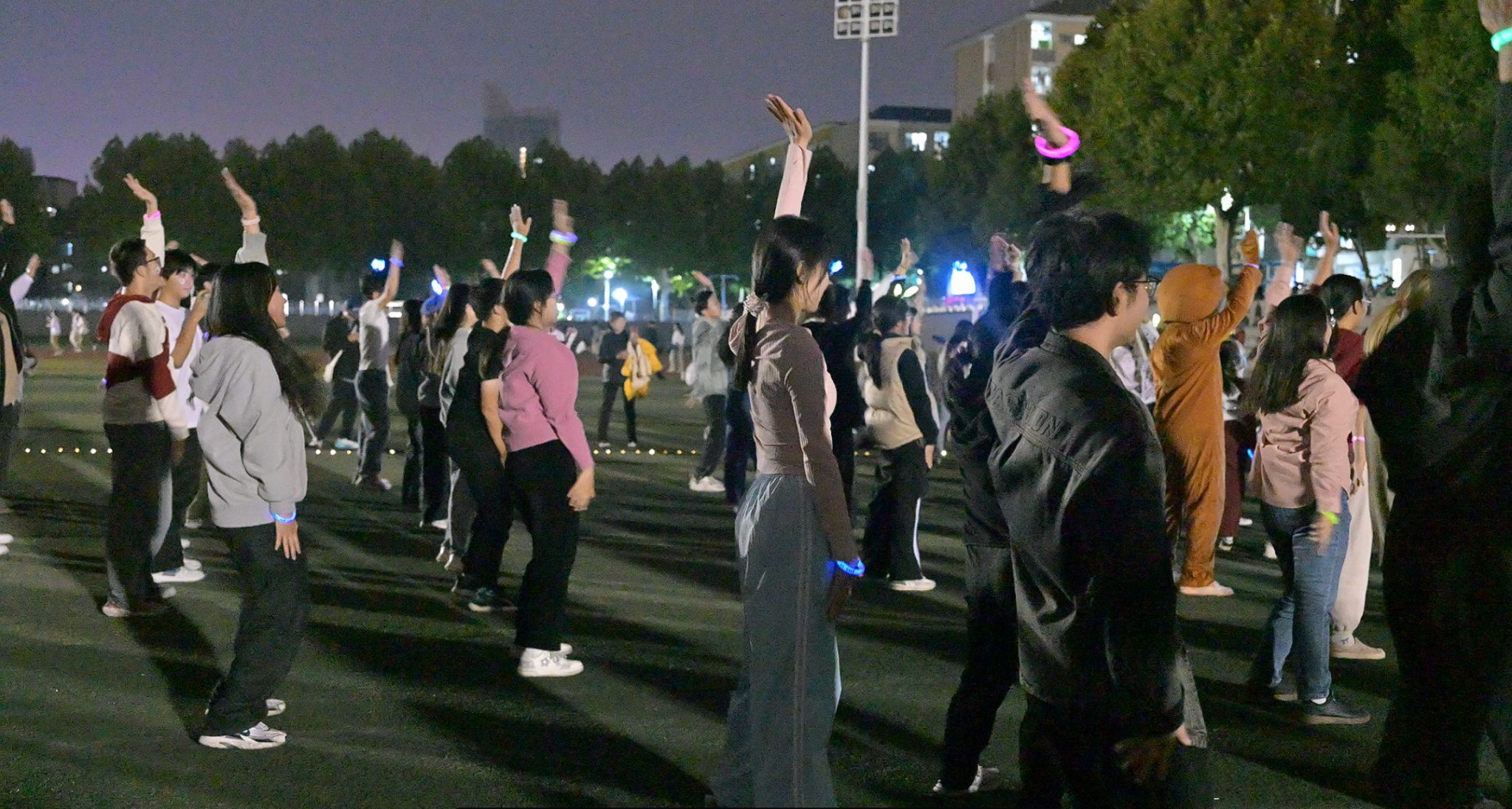 (通讯员 妥致忠)晚风轻扬,荧光点点。11月8日晚,一场由校学生会主办、资源学院学生会承办的“悦运动 跃青春”荧光夜跑活动在学校西区操场开跑!本次夜跑,设置“青春跑区”“广场舞区”“寻找李四光科普展区”,律动的身影、轻快的步伐,欢声笑语,溢满校园。