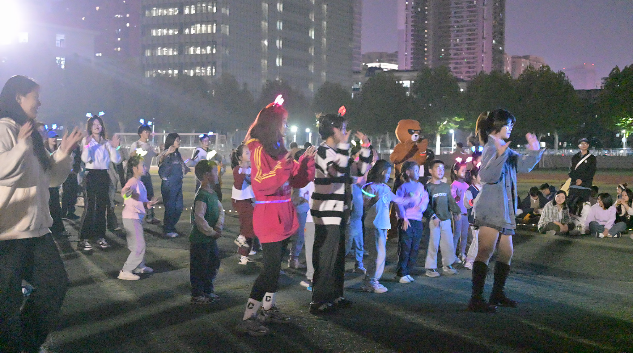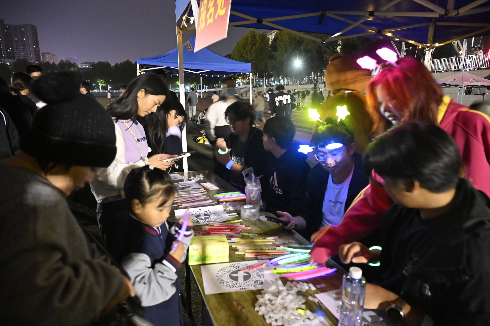 19:00,随着主持人的一声令下,荧光夜跑正式启航。操场上,一条条荧光手环在夜色中闪烁,犹如点点繁星,照亮了青春的跑道。大家你追我赶,互相鼓励,共同完成了夜跑挑战。