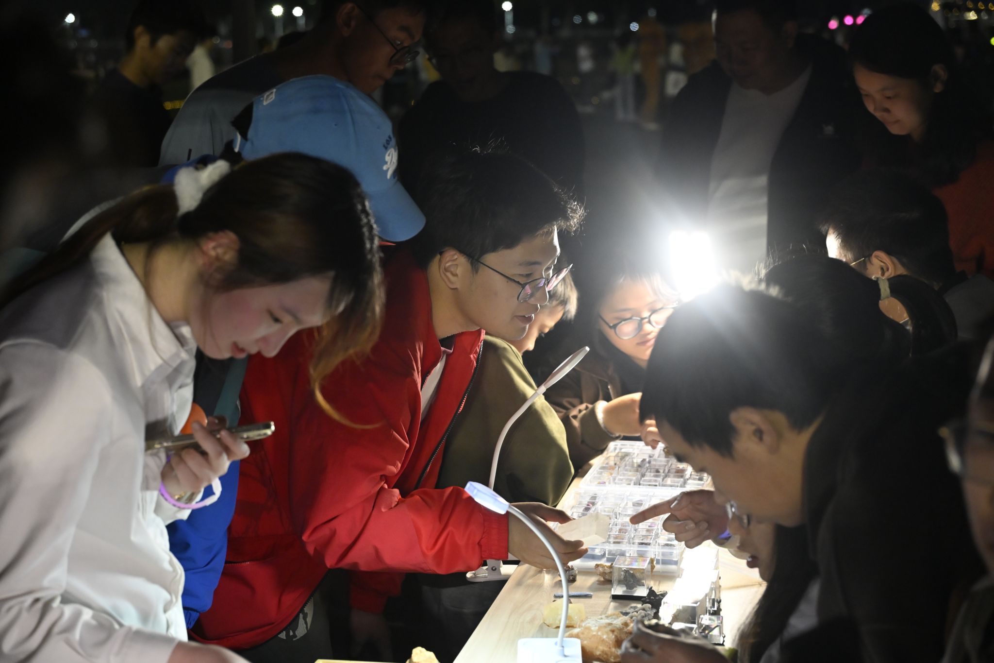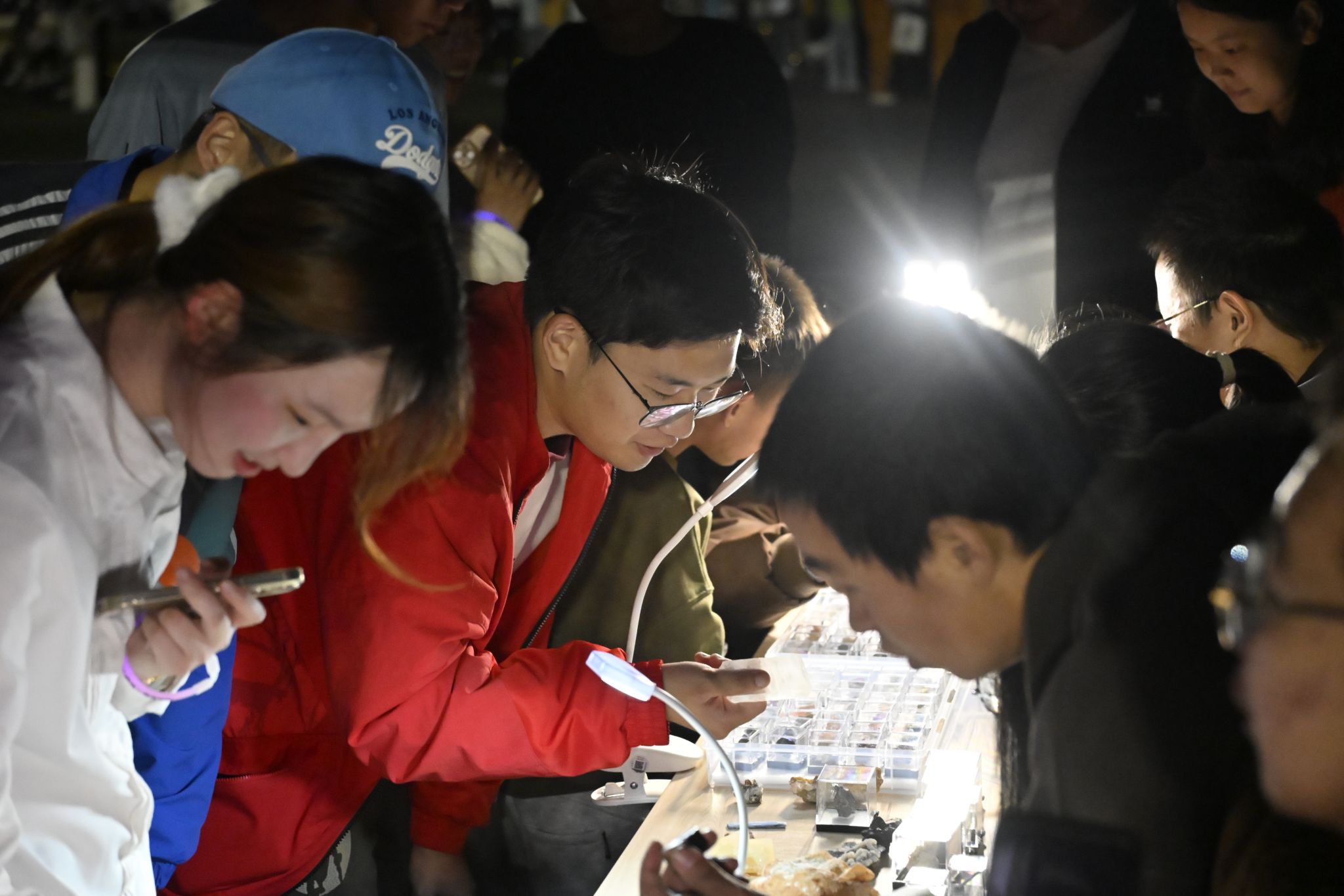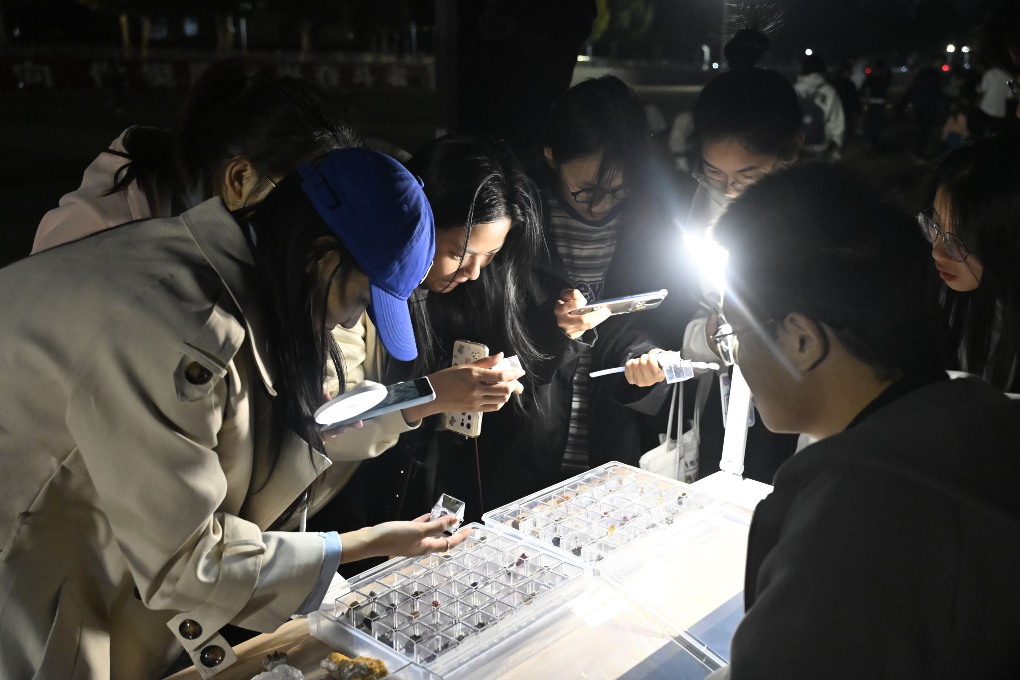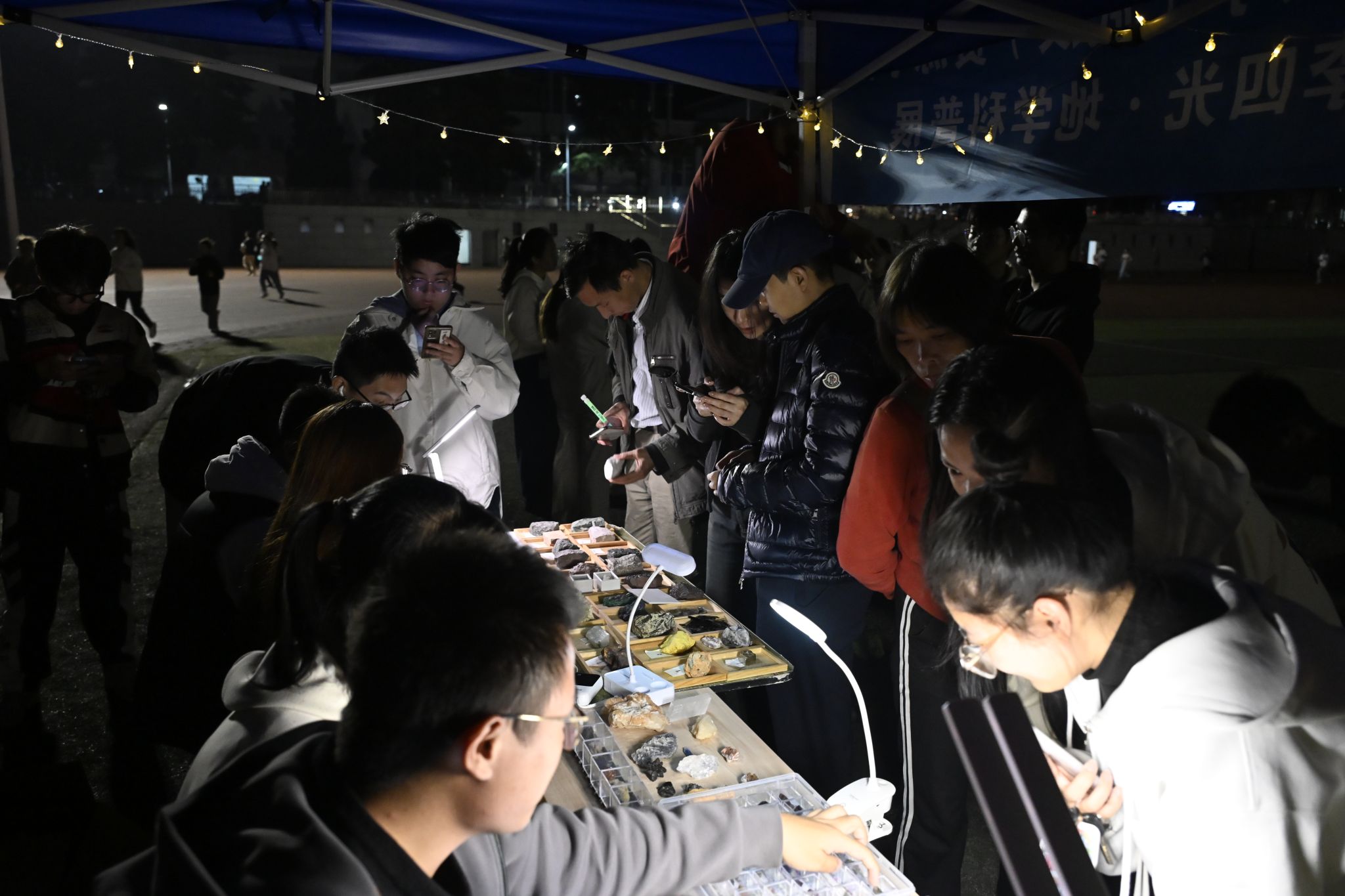 在地学科普展区域,资源学院“寻找李四光·地学科普展”吸引了大量师生驻足参观。本次科普展由资源学院学生会科普实践部精心筹备,展出了多种珍贵的矿石标本和地质模型,志愿者也为来参观的师生讲解矿石的形成过程、地质特征和用途等。