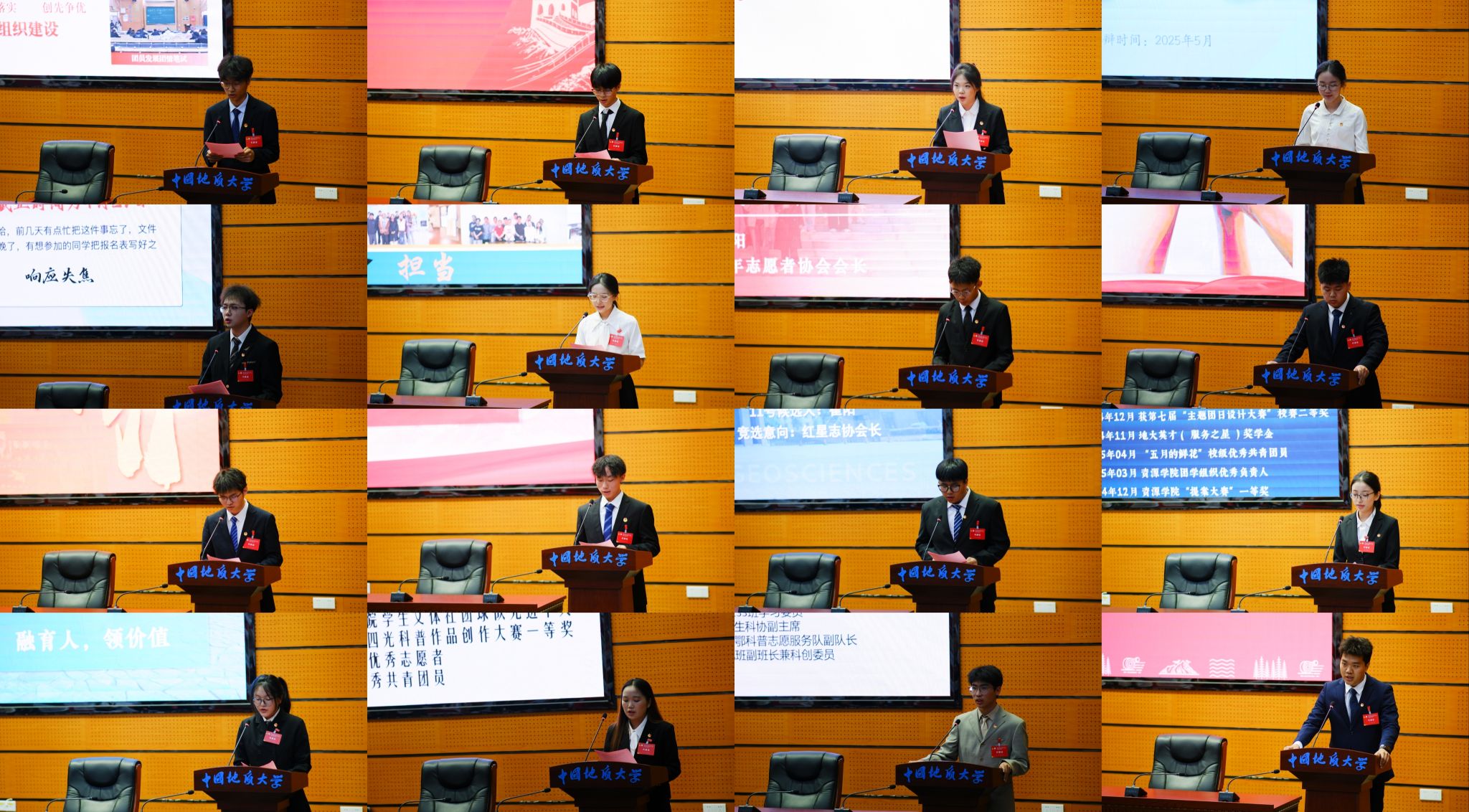 大会期间,由大会主席团执行主席、资源学院团委副书记唐果主持。大会依次审议通过选举办法,监票和计票人员,2025届学生会、研究生会秘书长,新一届团委委员、学(研)委委员,2025届团学组织主席团成员建议名单。