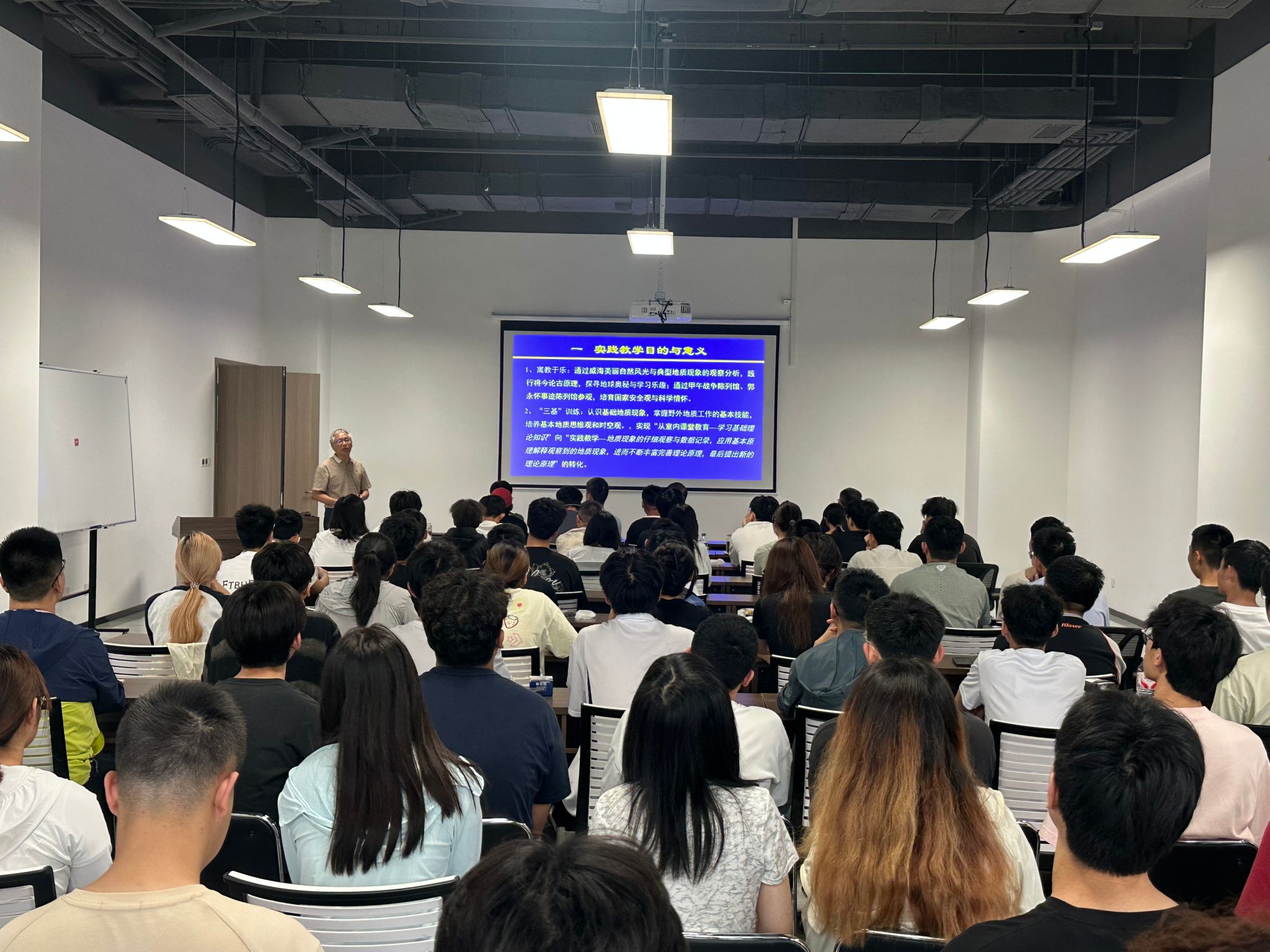 同日下午,资源学院在园区举行“威海地质实习动员大会”。实习队教师杨香华详细介绍了实习路线安排、教学内容以及注意事项。他希望,通过本次实习,同学们扎实掌握野外技能,培养地质思维与时空观。王维介绍了野簿记录规范、罗盘使用规范。