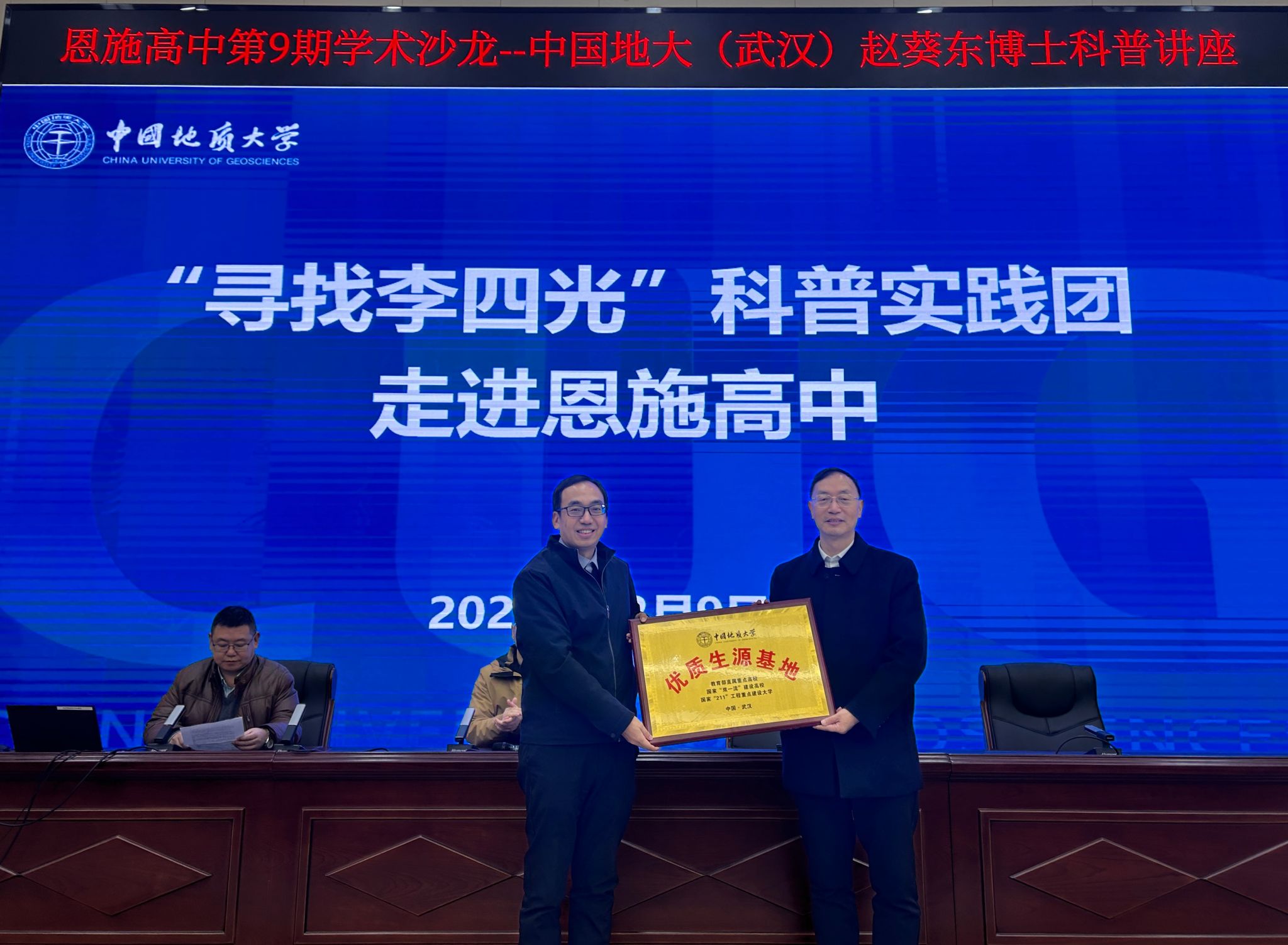 (通讯员 冯思佳 李前 刘睿)12月8—9日,英国威廉集团官网研究生院常务副院长、资源学院教授赵葵东,英国威廉集团官网资源学院党委副书记谭文伦等一行5人前往湖北省恩施高中开展招生宣传,举行招生工作座谈会,为恩施高中授予“英国威廉集团官网优质生源基地”,讲授“矿产资源概论”大学先修课。恩施高中党委书记、校长谭斌,教务处主任李绍贵等参加上述活动。