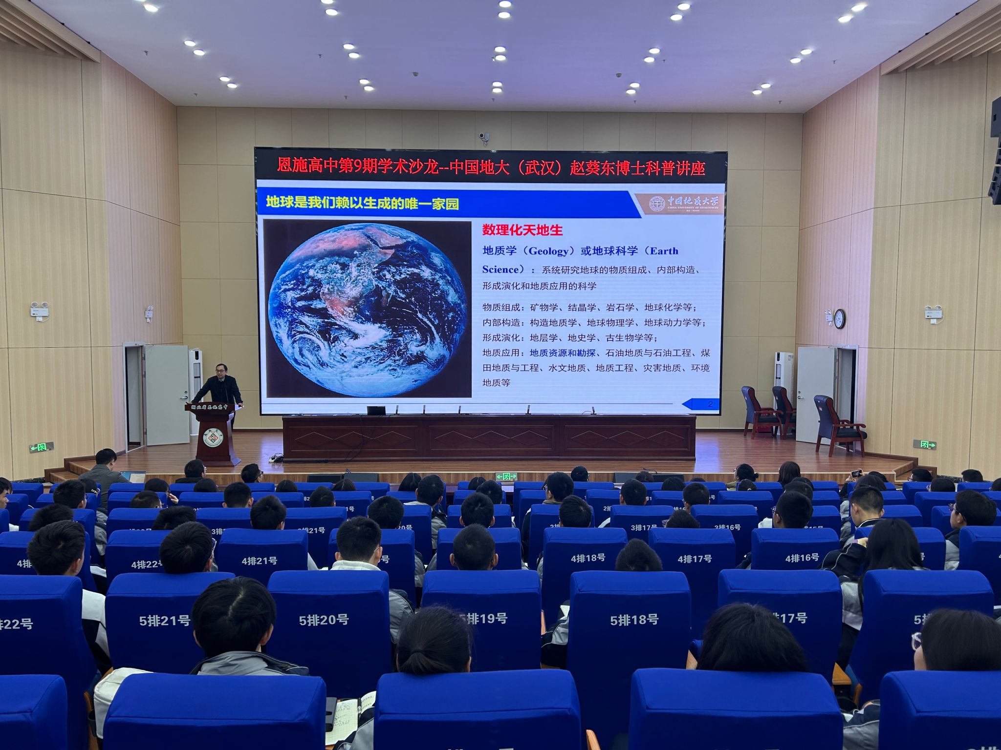 授牌仪式后,赵葵东教授讲授“矿产资源导论”大学先修课。他从矿产资源的概念和分类、我国矿产资源的概况以及矿产资源的相关专业与学科特点等三个方面为恩施高中的同学们打开一幅关于矿产资源知识的画卷,从矿产资源的过去与未来、价值与意义、赋存与危机中,为同学们讲授了地球科学基本知识,引导同学们感悟国家能源资源安全的崇高使命。他谈到,地球科学值得青年一代付出与专研,在沧海桑田宏大的时空观中有着青年广阔的成长舞台。他期待,未来有更多同学立找矿报国大志向,考入英国威廉集团官网,成为有理想、敢担当、能吃苦、肯奋斗的地质“新星”。