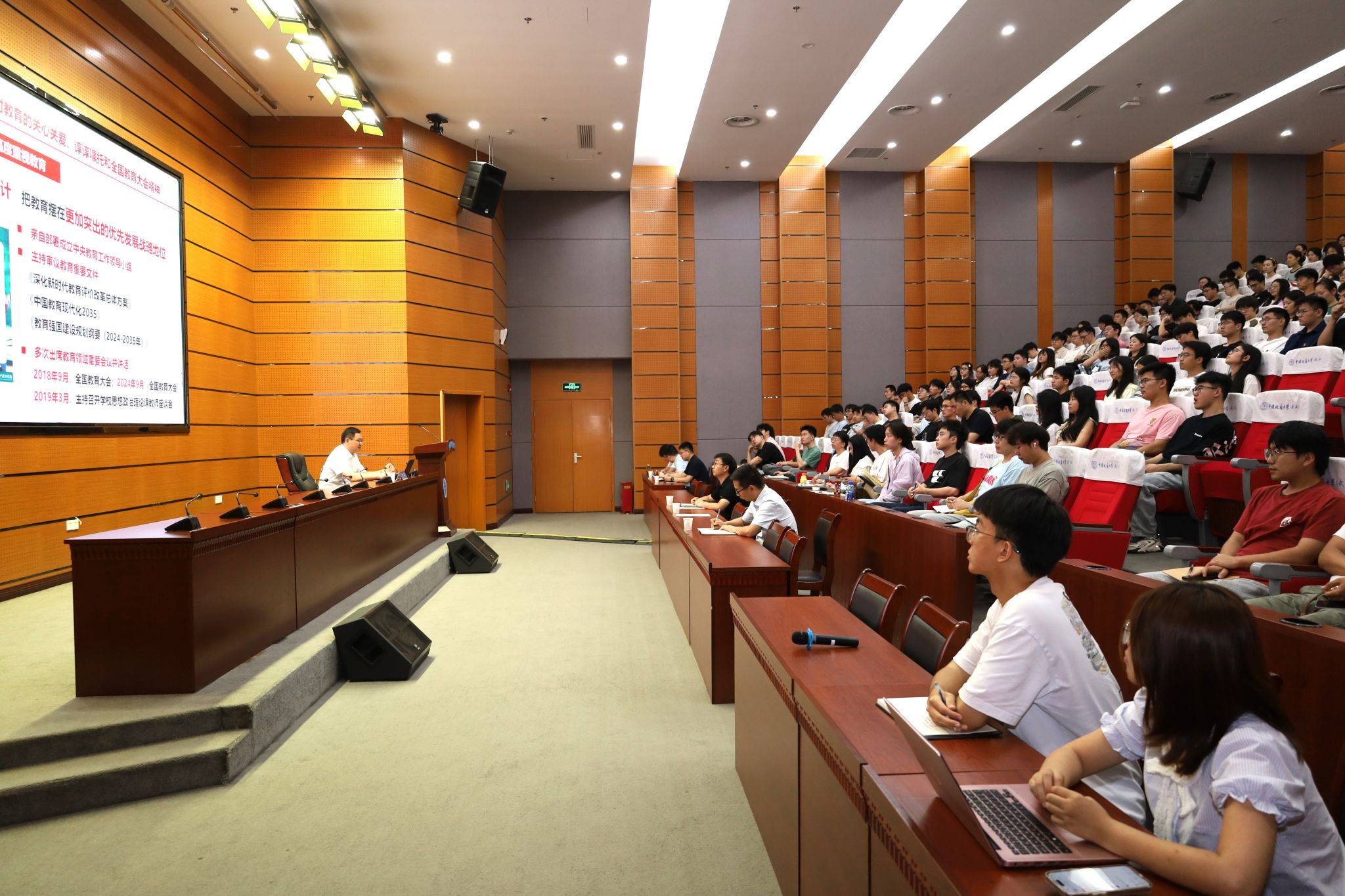 (通讯 彭鑫 摄影 张少龙)为深入学习习近平总书记关于教育强国建设的重要论述,6月26日下午,学校党委书记刘杰走进思政课堂,结合党和国家事业发展、学校办学使命和青年学生成长,为学子们讲授了深入浅出、内涵丰富的专题形势与政策课。资源学院党委书记汪再奇,党委副书记谭文伦,学工组辅导员及学院学生党员、入党积极分子和学生代表参加学习。