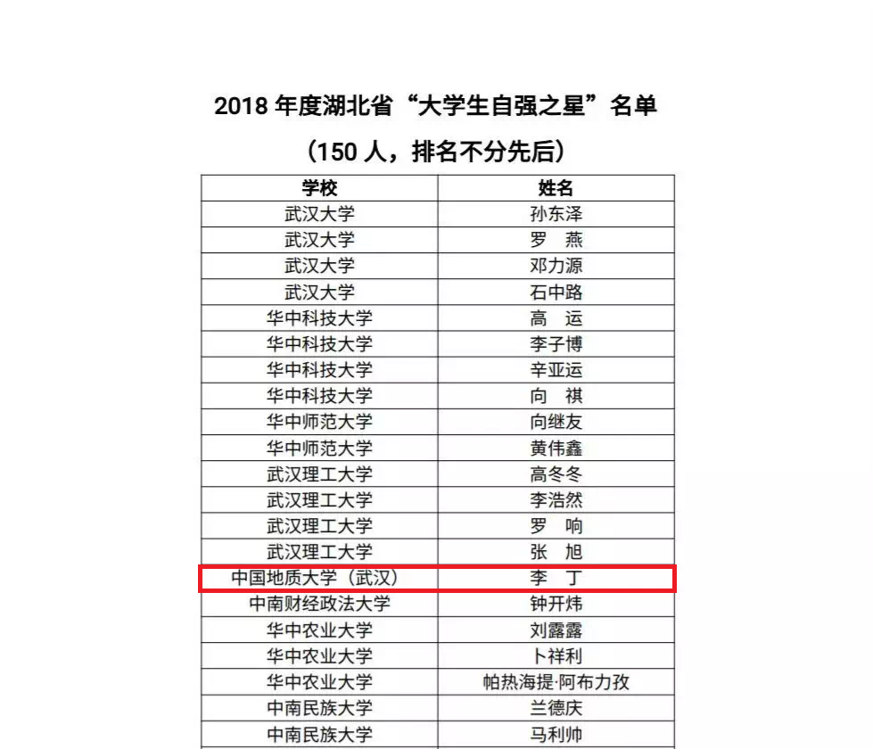 英国威廉集团官网本科生李丁获2018年度湖北省“大学生自强之星”并被推荐参加全国评选