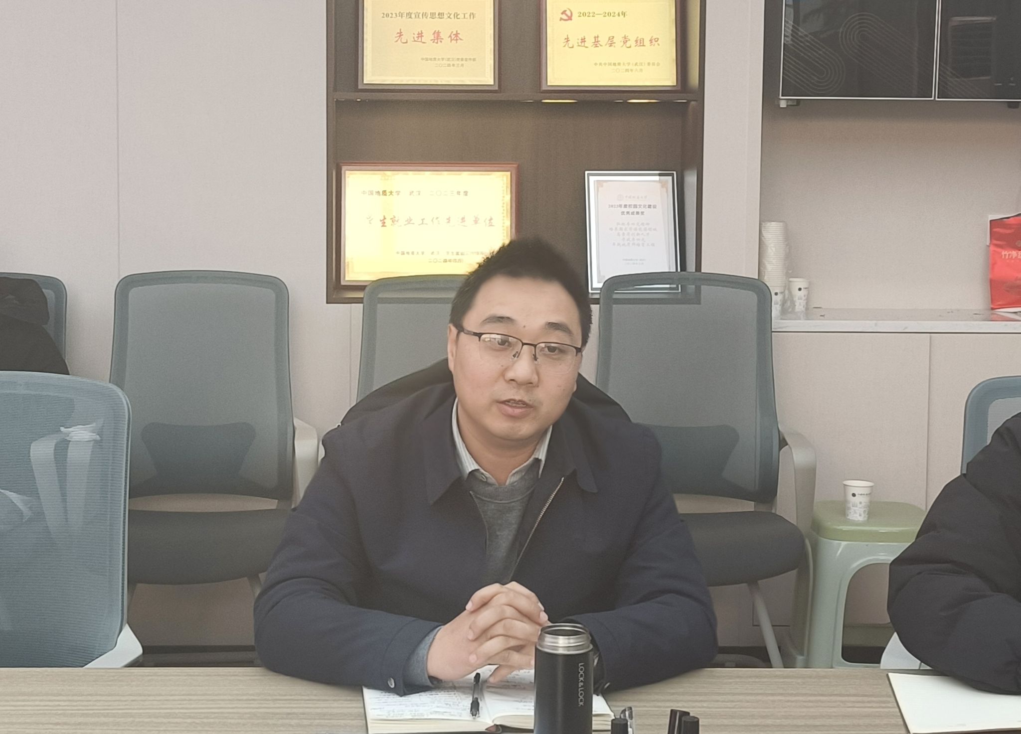 汪再奇充分肯定学院2024年教师党建工作。他讲到,2024年,各教工党支部按照“七个有力”的要求,规范有序、扎实有效地推进基层组织建设,支部建设成效显著,充分发挥了支部的战斗堡垒作用和党员的先锋模范作用,为学院的高质量发展提供了坚实保障。石油工程系党支部入选全国“双带头人”教师党支部书记“强国行”专项行动团队;资源科学与工程系党支部获评学校“优秀基层党组织”;资源科学与工程系党支部、石油地质系党支部、矿床学研究生党支部通过学校第二批党建“双创”中期考核;构造-成藏年代学研究生党支部获学校研究生党支部风彩大赛二等奖;吕新彪教授获授“第一次全国自然灾害综合风险普查先进个人”,姚卓森教授荣获第20届侯德封矿物岩石地球化学青年科学家奖、获评“湖北向上向善好青年”,陈思副教授获第七届全国高校青教赛工科组三等奖,煤地质学课程组获得湖北省高校“优秀基层教学组织”称号,“沉积相与沉积环境”“煤岩及煤化学”获批湖北省2024 年度新工科建设项目,“矿床学导学团队”获评卓越导学团队,“沉积过程定量化导学团队”获评优秀导学团队,资源科学与工程系获评“文明教学科研单位”;吴超获评“优秀党员”,霍少孟获评“优秀党务工作者”,朱红涛获评“最美地大教工”,赵新福获评“研究生的良师益友”,伏海蛟获评“最受学生欢迎老师”,马奔奔、邹双梅、韩金生获评“优秀班主任”……