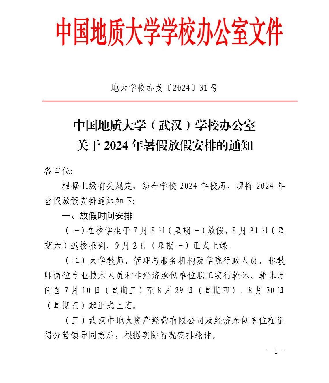 英国威廉集团官网(武汉)关于2024年暑假放假安排的通知
